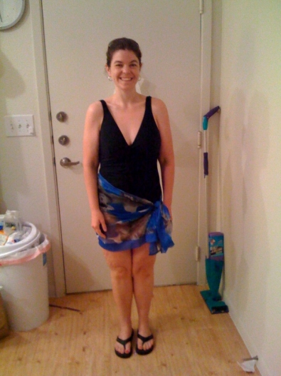 Anyway...HUGE wow moment for me, so I thought I'd share. (: Also thought you might be interested in what wearing a bathing suit looks like after a big weight loss, so here's a pic. Not Cindy Crawford, but not hideous, either....in my estimation, at least. (:
