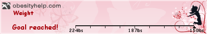 Thank you. I decided 150lbs would be a comfortable weight for me and to still look healthy. I don't want to look sickly. So far I'm off cholesterol meds, I no longer have sleep apnea and my back and walk has improved a lot (I've had 3 back surgeries in a 2 yr period)