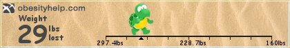 1Mo: -21 2Mo: -16 3Mo: -12 4MO - 13 5MO: -11 6MO: -10 7MO: -10.3 8MO: -6 Goal in 8 months 4 days!! 6' 2'' EWL 103% Starting size 28 or 4x (tight) now size 12 or large, shoe size 12 w to 10.5 150+ pounds lost